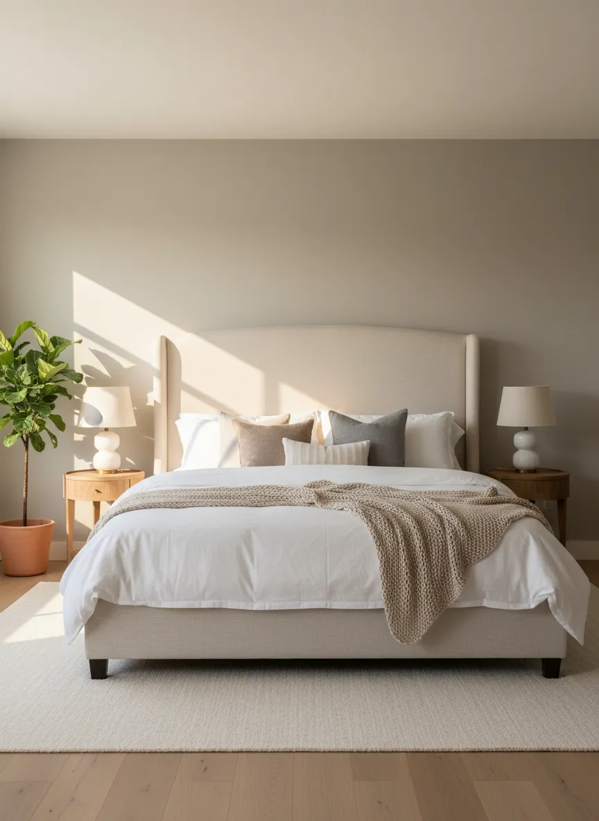Neutral Wall Panels Behind Bed