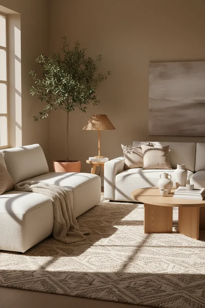 A beige living room aesthetic leans on harmony more than it uses contrast. Materials blend naturally to create a smooth visual flow from the sofa floor. Nothing feels loud or sharp when you walk into this very peaceful room.