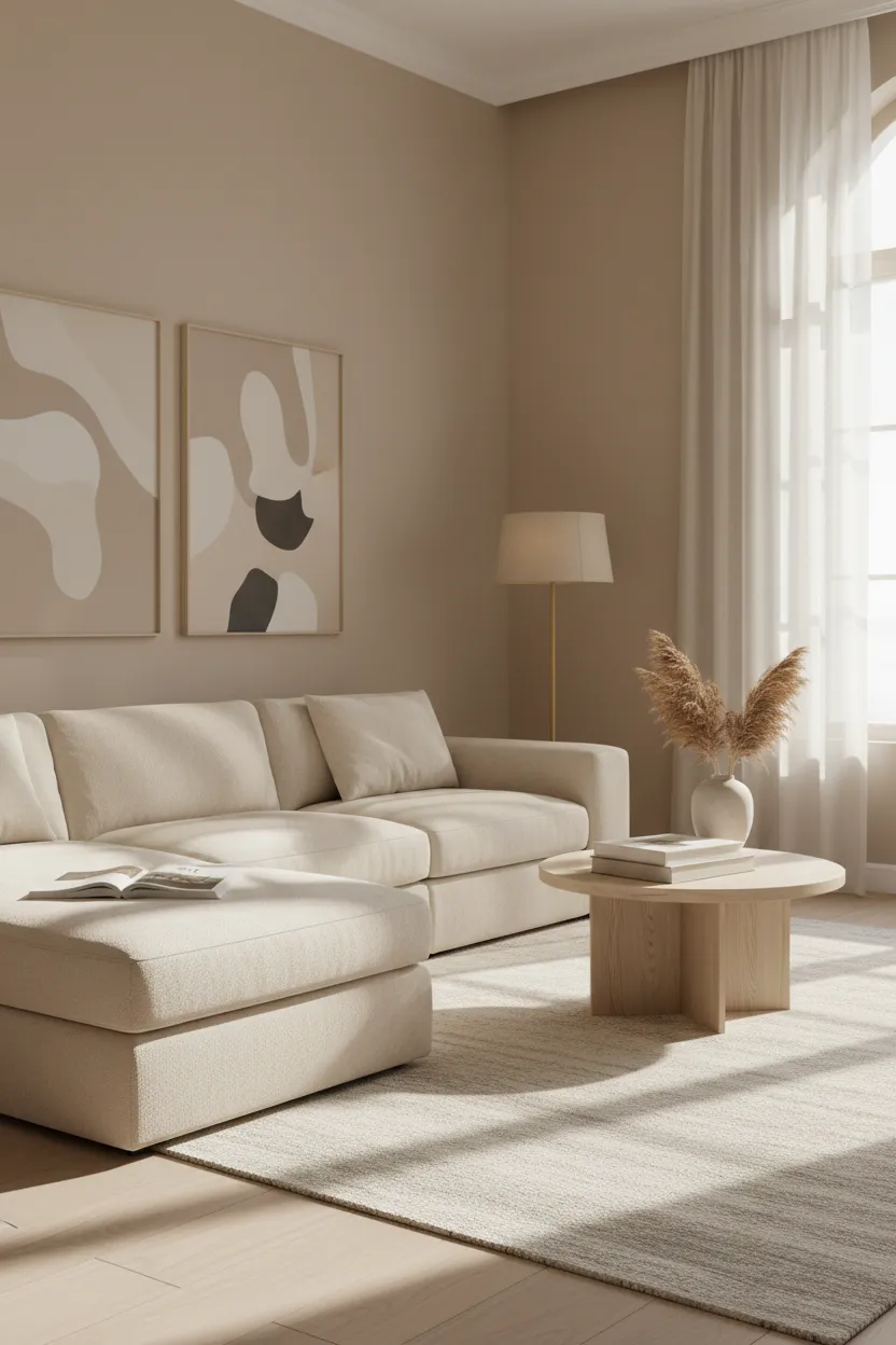 A beige living room feels calm when color, texture, and light stay gentle. Soft layers add warmth without visual noise. Light wood keeps the palette grounded and bright. Quiet lighting supports evenings and slower moments. The space remains welcoming, comfortable, and easy to look at every day.