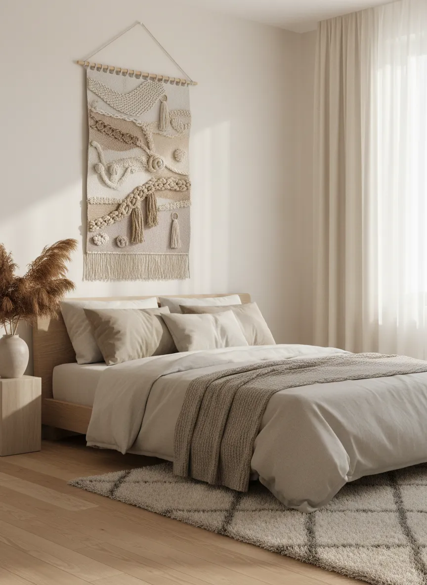 Fabric wall decor softens hard surfaces. Woven textures add warmth. Materials like cotton and wool feel gentle.