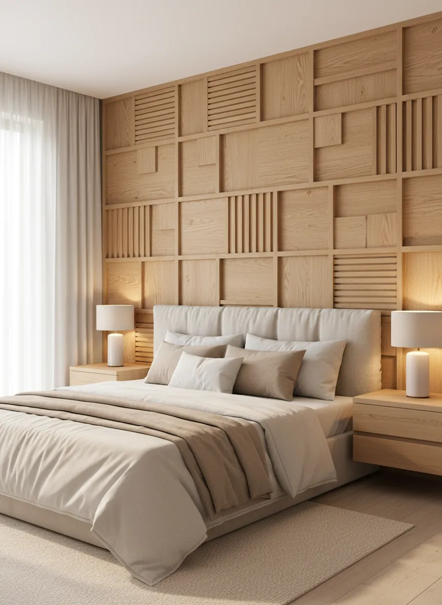 The bedroom atmosphere becomes cozy. Walls feel less flat. Texture brings comfort without color overload.