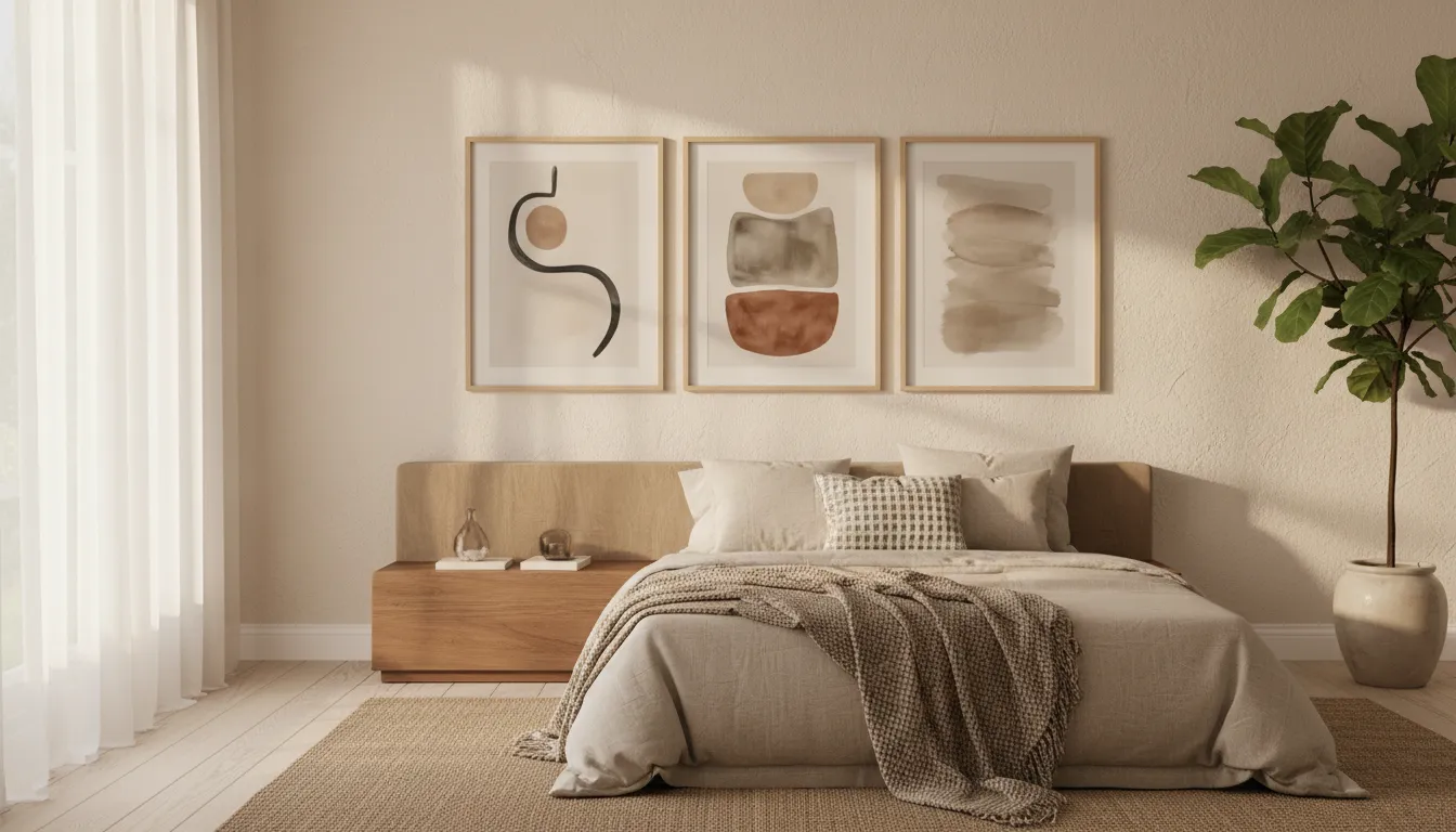 • neutral bedroom wall art