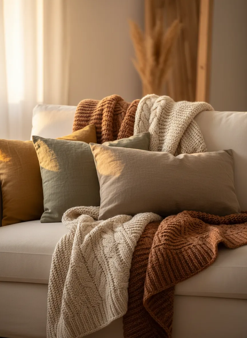 Textiles add softness and comfort to living spaces. Throws, rugs, and cushions create visual warmth. Neutral fabrics keep the look cohesive. Layers feel inviting.