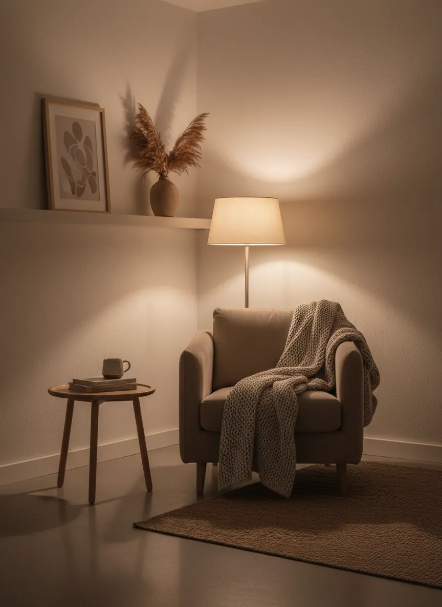 Reading corners create a quiet retreat within the home. A comfortable chair and soft light define the area. Neutral tones maintain calm balance. The space feels peaceful.