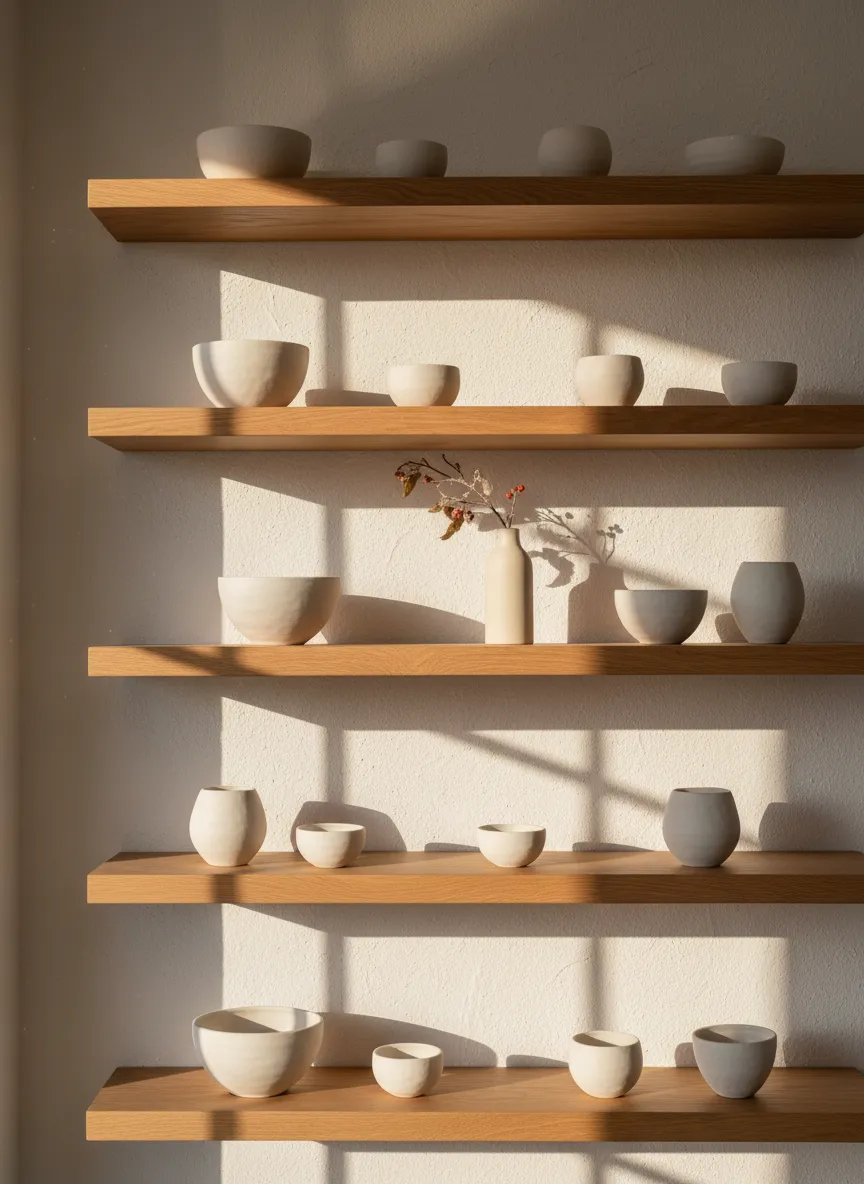 Wood elements add warmth naturally during winter months. Tables and shelves create a grounded feel. Light finishes keep the space airy. The decor feels balanced.
