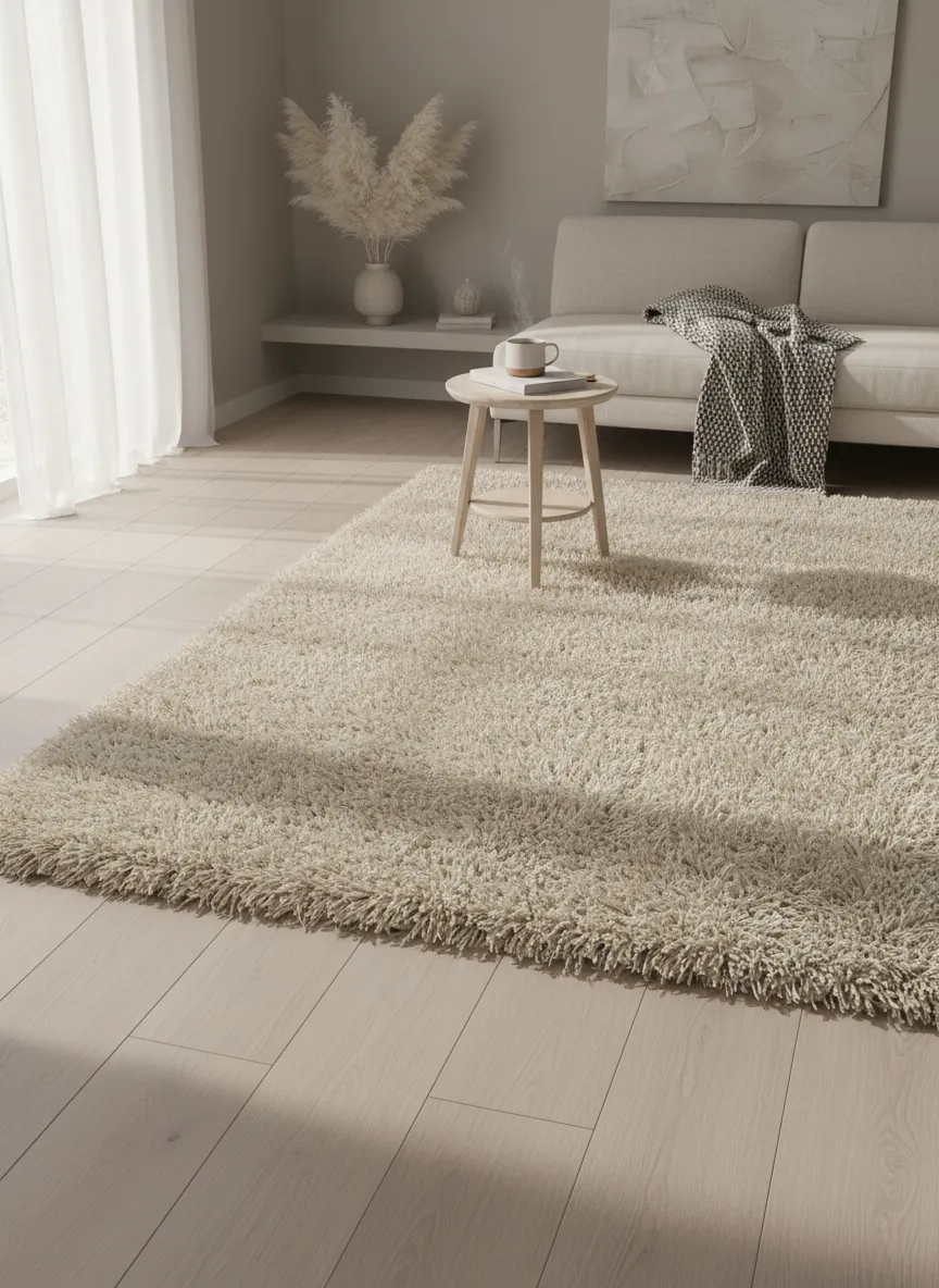 Rugs add warmth underfoot during colder months. Soft textures ground the room visually. Neutral tones keep the palette cohesive. The space feels comfortable.