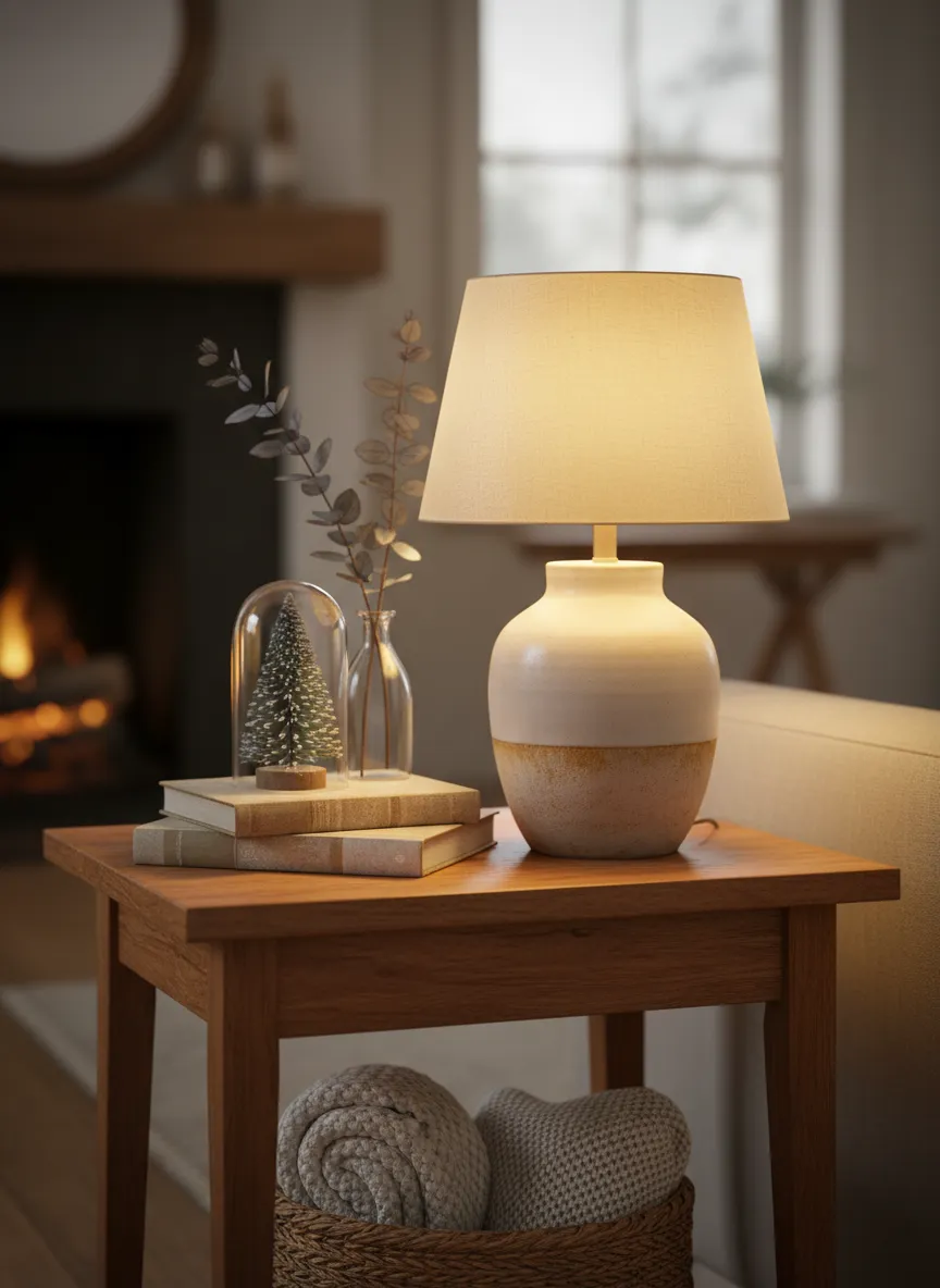 The home feels calm and comforting. Lighting enhances warmth easily. This seasonal cozy styling detail adds atmosphere.