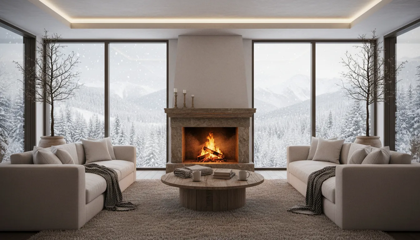 The home becomes more comfortable for relaxation. Textiles enhance coziness. This detail supports a warm winter environment.