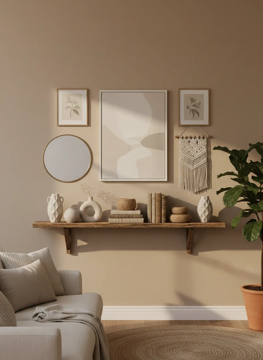 • warm neutral wall styling
