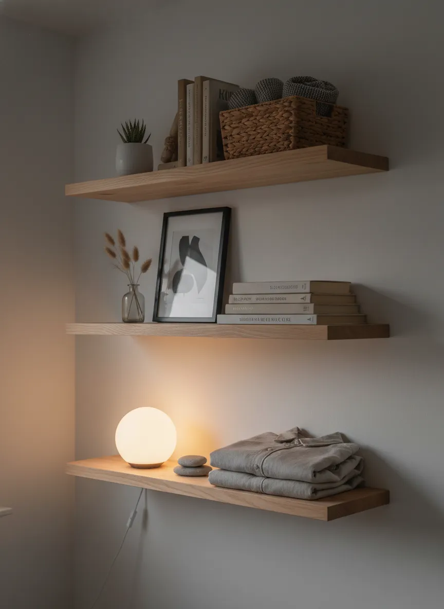 Basic shelves provide storage on a budget. Affordable boards and brackets feel clean and simple. Shelves hold books and small decor neatly. The wall gains gentle function.