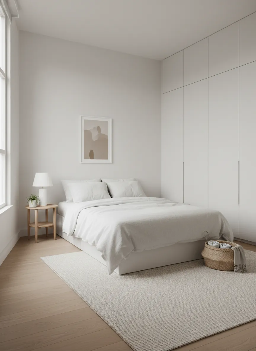 The bedroom feels peaceful and organized. Less clutter means less visual stress. This step is the easiest way to achieve a true minimal style on any budget.