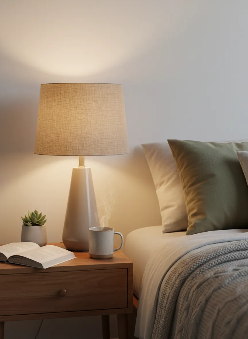 Changing lampshades refreshes lighting cheaply. Fabric shades soften harsh bulbs. Neutral colors keep the look gentle and balanced. Light instantly feels warmer.