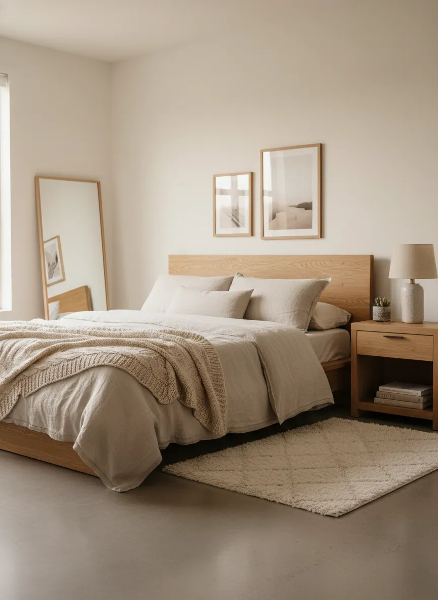 A minimal bedroom decor style focuses on comfort without clutter. Fewer objects create clarity. Texture replaces decoration. When warm materials layer softly together, minimal spaces feel peaceful, welcoming, and easy to relax in throughout the day.