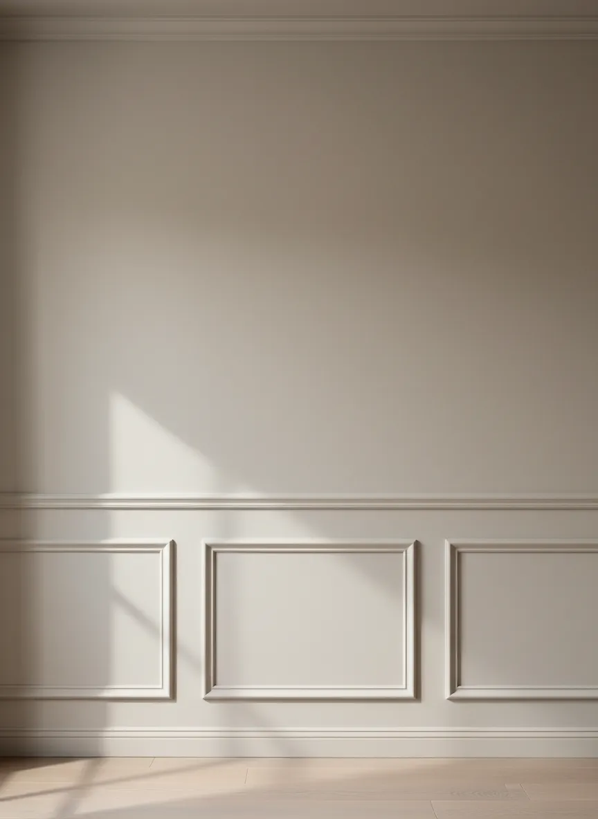 Wall molding adds quiet architectural interest. Painted trim blends with the wall color. The detail feels subtle and refined. Surfaces stay clean and elegant.